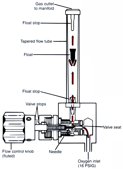 Oxygen flow meter assembly. The oxygen flow meter assembly