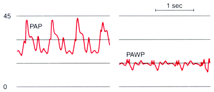 artery wedge pressure (PAWP). PAP, pulmonary artery pressure. (Redrawn